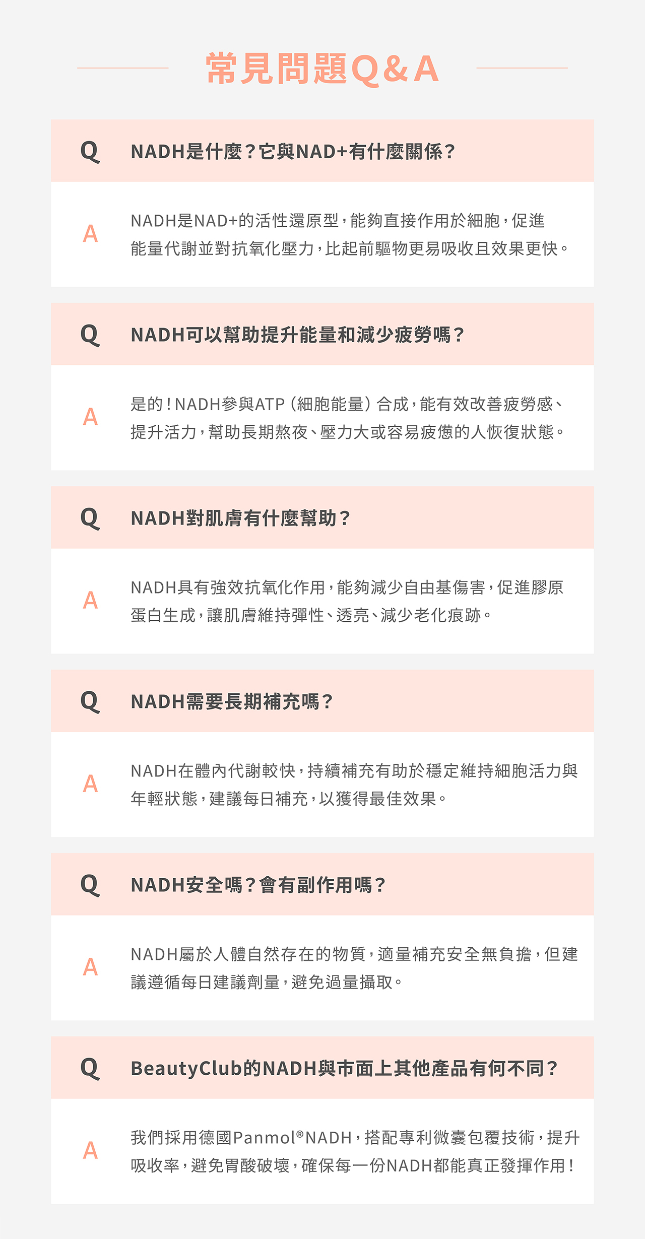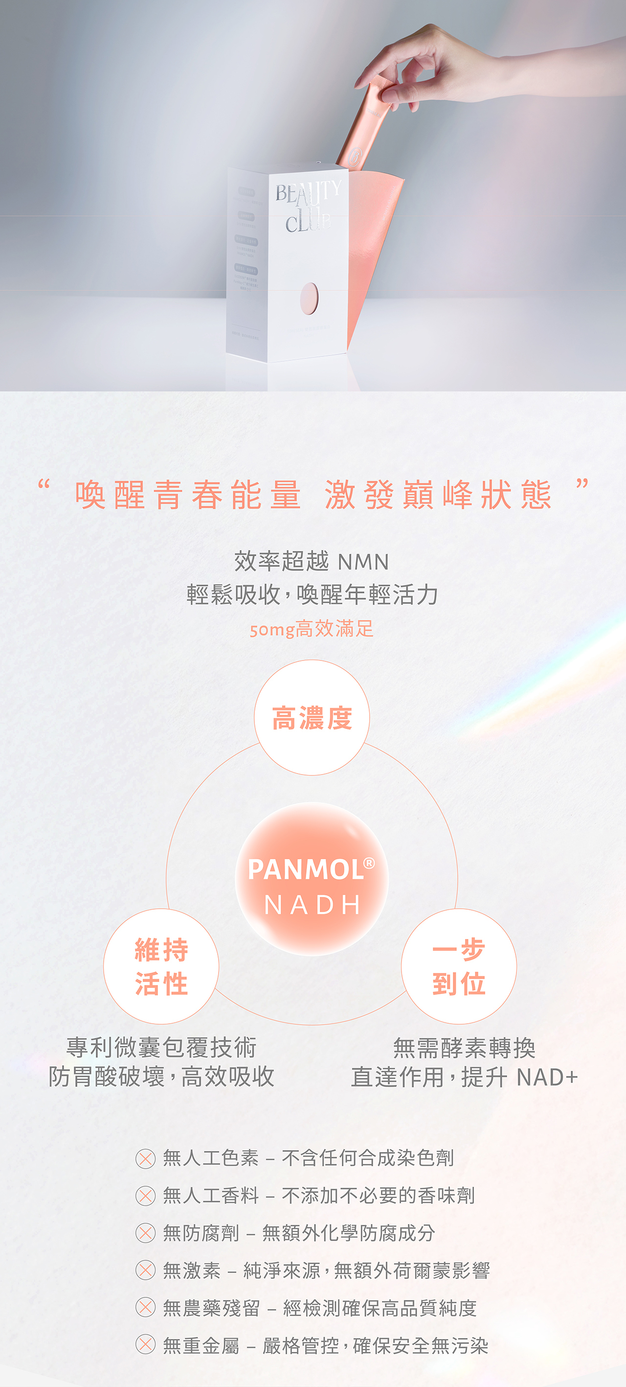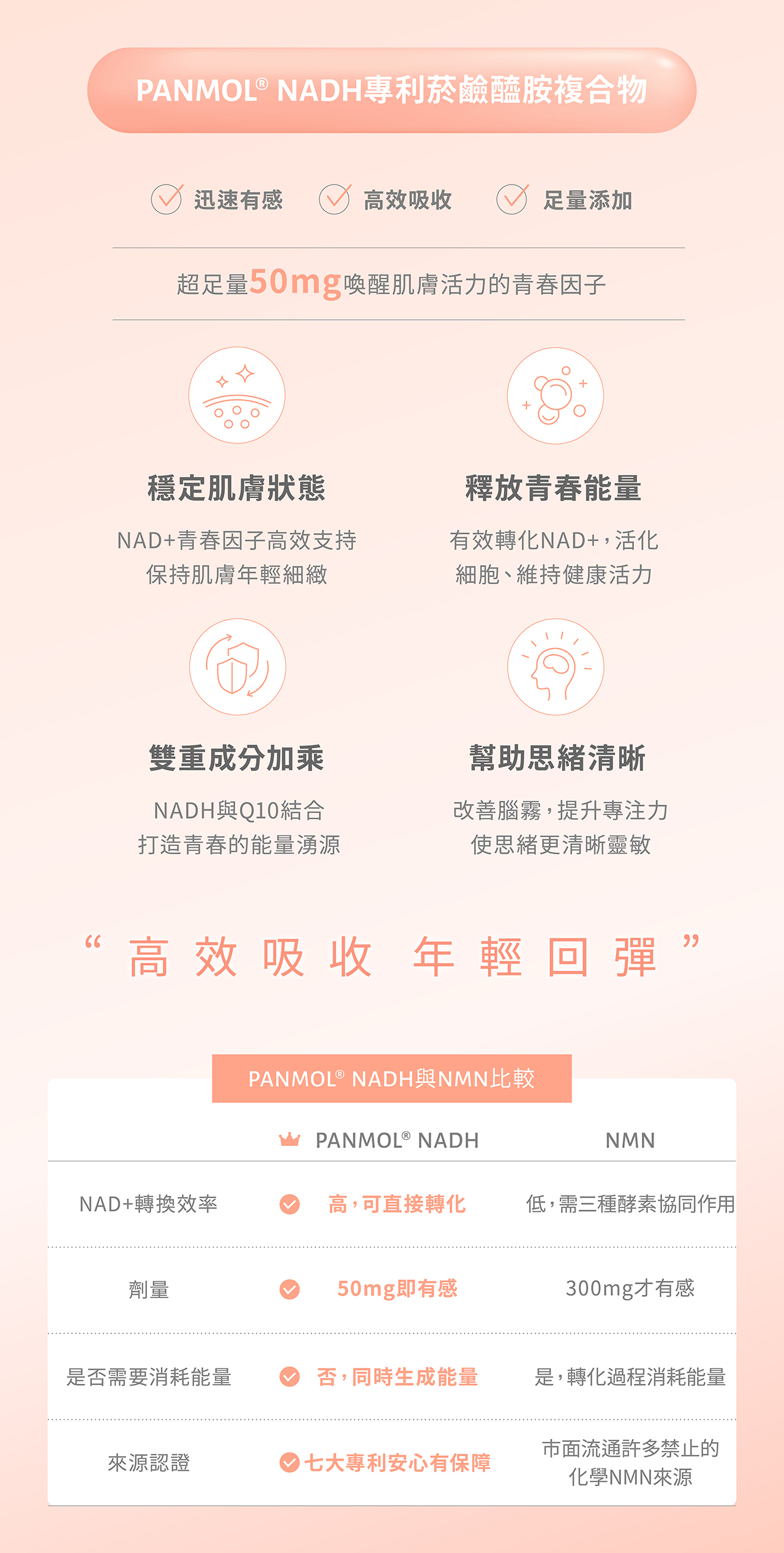 ✅ PANMOL® NADH → 補充細胞能量,細嫩如絲
